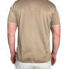 Ce T-shirt fin à col rond est conçu en coton mercerisé de couleur beige, contrasté par le coupé bord franc blanc au col, aux manches et à la base. Il se distingue par sa couture dorsale et son échancrure de chaque côté, lui conférant un style unique. Que vous le portiez pour une journée décontractée ou pour une sortie plus habillée, ce T-shirt offre un look élégant et tendance.