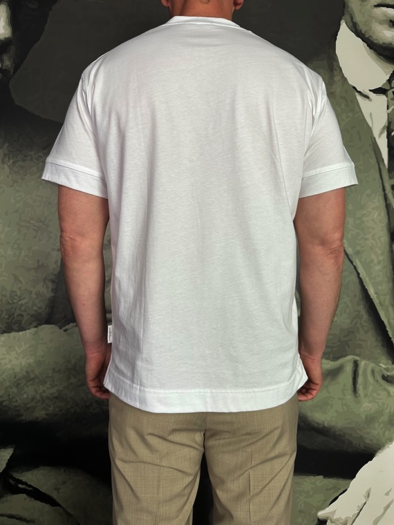 • T-shirt en jersey de coton blanc contrasté par une poche ton sur ton blanc à soufflet avec un rabat.