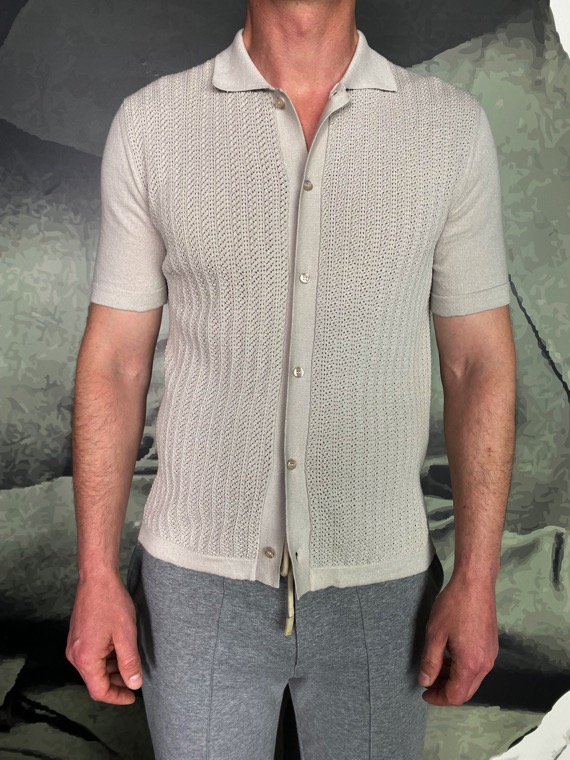 La chemisette Jesse Beige est une preuve vivante de l’attention méticuleuse portée par Tagliatore à chaque détail. Elle présente une fermeture soignée avec six boutons et une coupe droite qui épouse naturellement la silhouette. La combinaison unique de maille de coton et de jersey sur les manches et le dos assure une respirabilité et une douceur exceptionnelles. Le col souple complète l’ensemble, créant une chemisette qui, tout en étant confortable, ne fait aucun compromis sur le style.