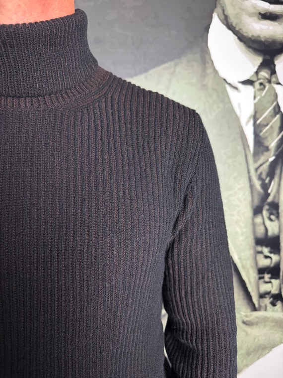 Le pull à col roulé en est un incontournable du vestiaire masculin et le modèle en laine à côtes anglaises noir et marron chocolat de Tagliatore n’est pas une exception. Alliant l’élégance intemporelle du col roulé à une maille bi-couleur sophistiquée, ce pull est l’allié parfait de vos tenues, qu’il soit porté sous une veste pour un look professionnel ou sous un blouson pour une allure plus décontractée.